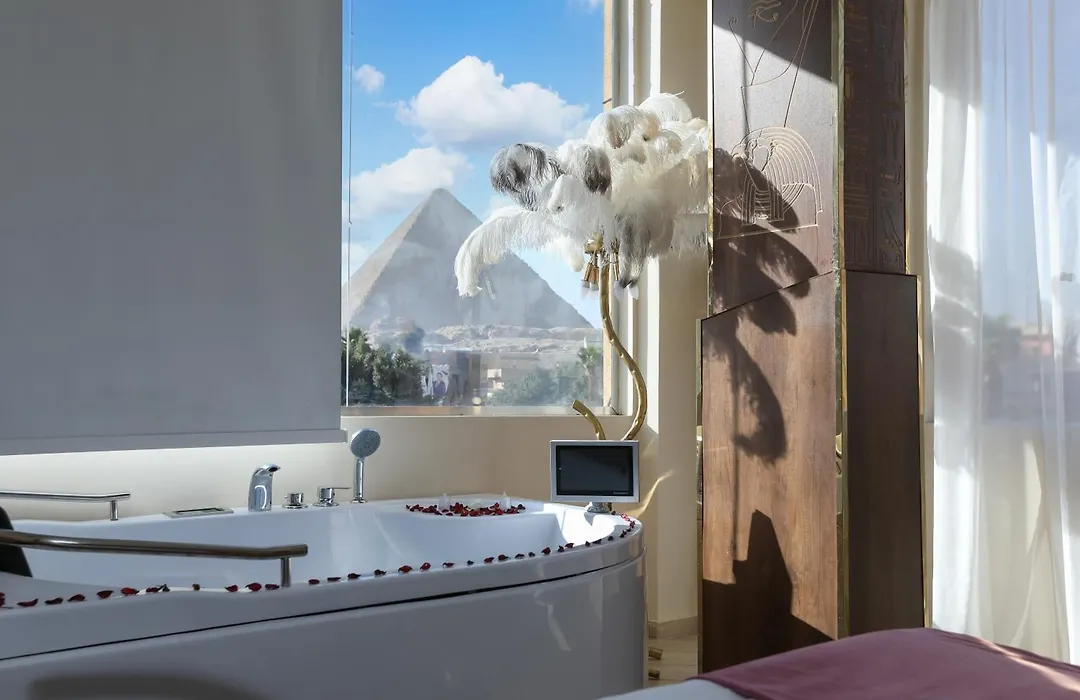 Con un jacuzzi y bañera de hidromasaje, el Pyramids Palace View Inn El El Cairo está situado a 700 m de la Esfinge en El Cairo. Con excursiones a caballo, este hotel está situado bastante cerca de Tomb of Meresankh III.